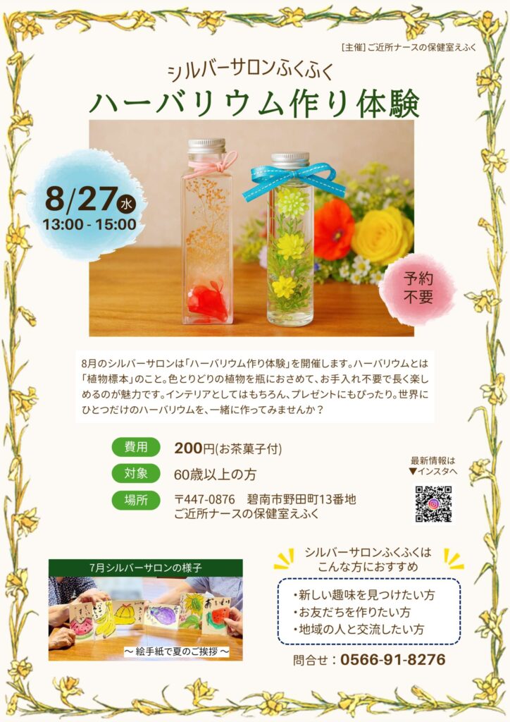 8月のシルバーサロンふくふくのイベントをご案内いたします。