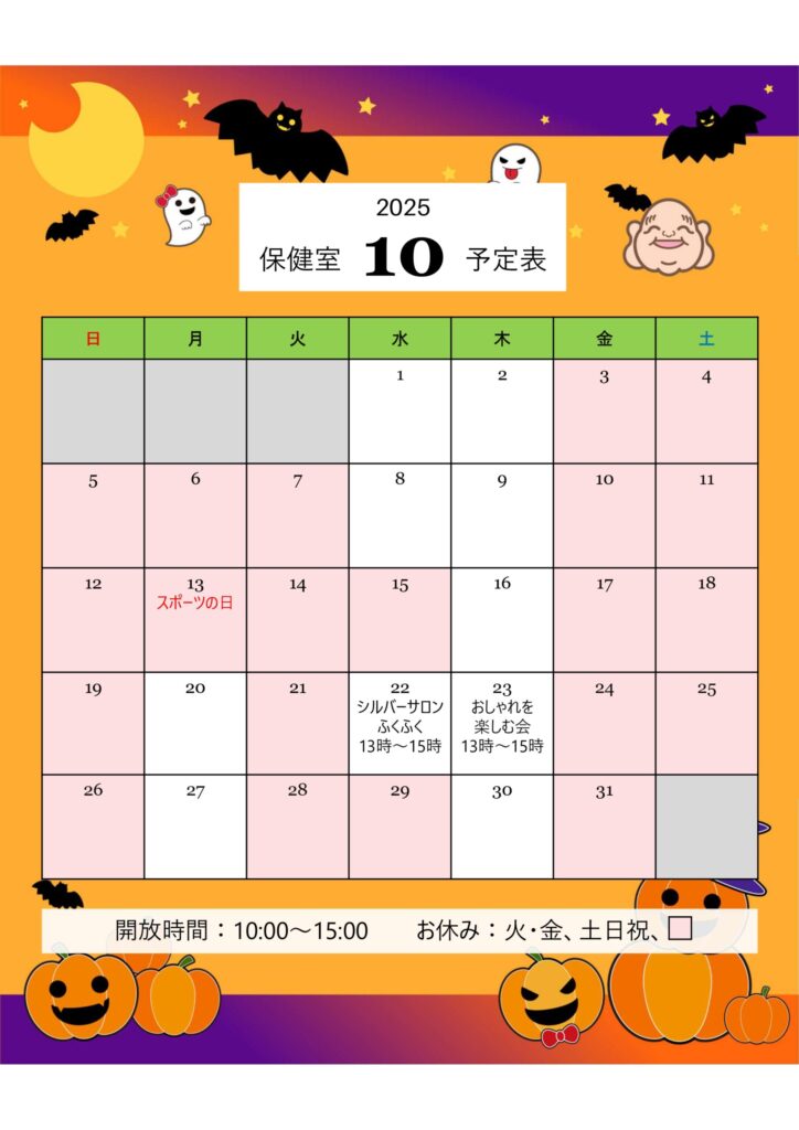 10月の保健室スケジュールをご案内いたします。
