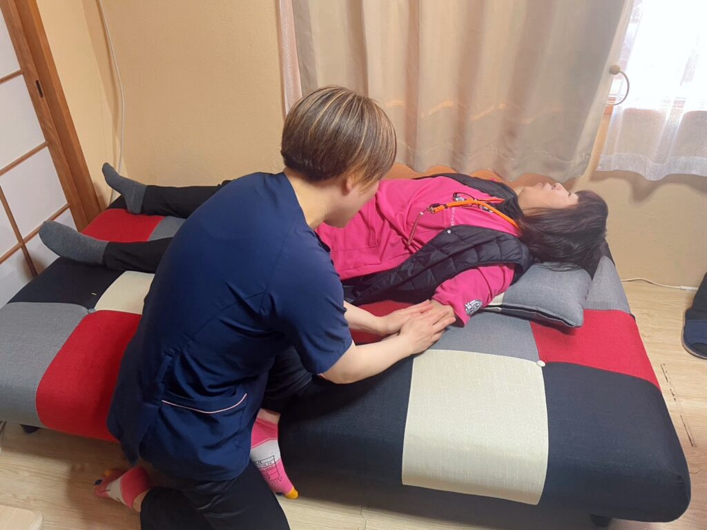 先日、日本訪問看護財団主催の「リンパマッサージの基本」研修に参加した職員が、学んだ内容を実践形式でスタッフへ共有してくれました。